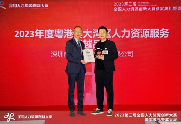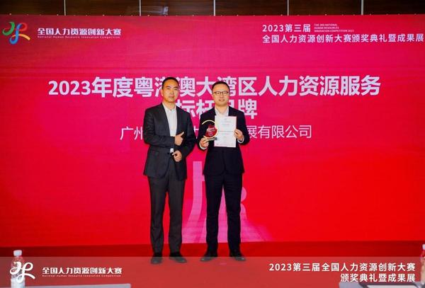 2023年度人力资源服务类标杆品牌由CHO私董会创始成员、广东省人力资源管理协会专家委员会委员刘兵颁发奖项。