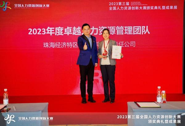 本次赛事还评审产生一批首席人力资源服务官、人力资源管理创新先锋人物、人力资源服务创新先锋人物。粤人协常务副会长、秘书长李颖锋,澳门大湾区人力资源协会秘书长邱洁愉,合生资产经营管理平台助理总裁、合生创展集团地产人力资源总经理、珠江人寿集团首席人才官、CHO私董会创始成员钱一伟为获奖个人颁发奖项。