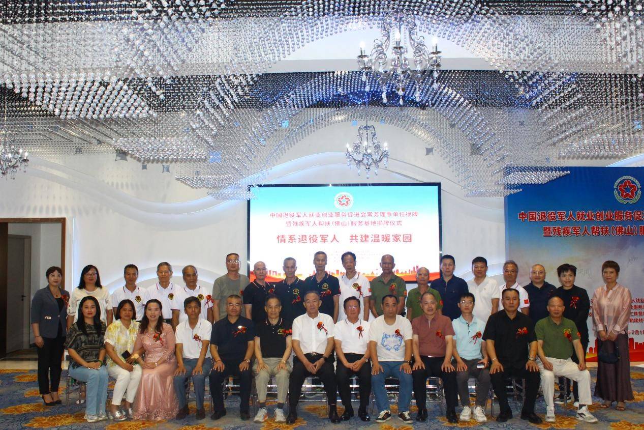 2025年7月19日,广东佛山顺德区荷村路老汇珠荷村店二楼见证了历史性的一刻——“中国退役军人就业创业服务促进会残疾军人帮扶(佛山)服务基地”在此隆重揭牌。这一里程碑事件标志着全国首个由餐饮企业深度参与的退役军人帮扶平台正式启动。揭牌仪式由中国退役军人就业创业服务促进会与佛山市老汇珠餐饮服务有限公司联合举办。政府代表、退役军人代表、中国退役军人就业创业服务促进会副秘书长苏纯明、曹保民等社会各界人士共同见证了这一重要时刻。
