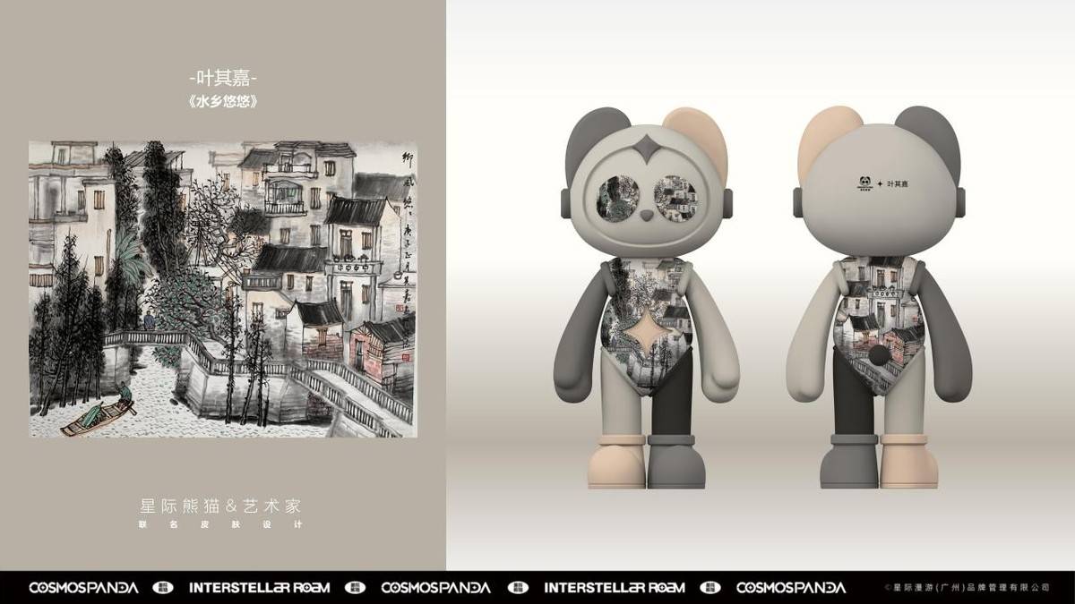 2025年8月,知名潮流艺术IP“COSMOSPANDA星际熊猫”与岭南画派代表性人物、中国美术家协会会员、顺德美协名誉主席叶其嘉先生达成深度合作,共同推出以“水墨乡愁的星际漫游”为主题的限量联名艺术手办系列。该系列巧妙融合了星际熊猫的科幻元素与叶其嘉先生笔下充满烟火气的岭南水乡水墨意境,旨在通过艺术收藏品的形式,传递跨越时空的文明共鸣与温暖记忆。