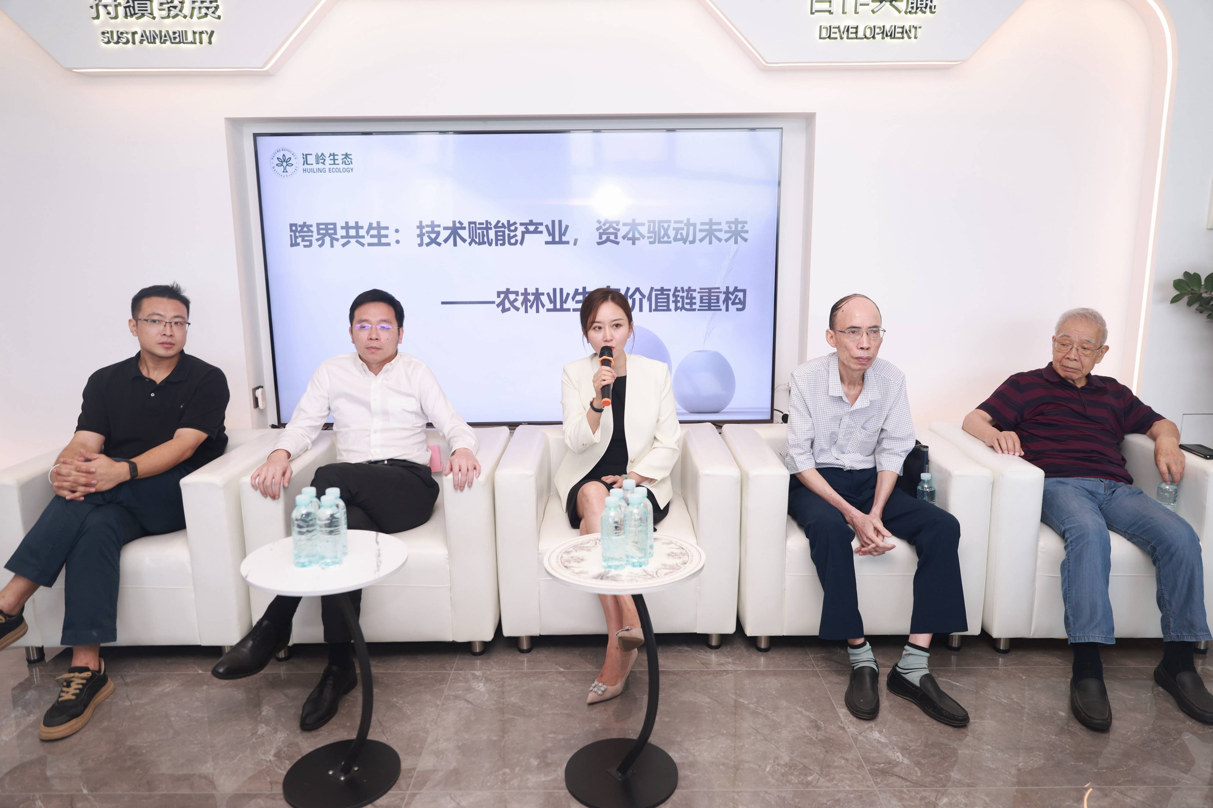 活动现场还举行了隆重的剪彩及三方股东签约仪式,标志着汇岭生态正式启动运营。随后,以“跨界共生:技术赋能产业,资本驱动未来—农林业生态价值链重构”为主题的圆桌交流会成功举办。汇岭生态董事长裴明月、广东省现代农业装备研究院副主任李沐桐、广东韶能集团股份有限公司副总经理蓝江,与省政府参事室特约研究员、省政府办公厅原副巡视员张敬,原省政府参事、省民盟原专职副主任、省电视台著名评论员王则楚等领导嘉宾围绕产业发展展开深度对话。