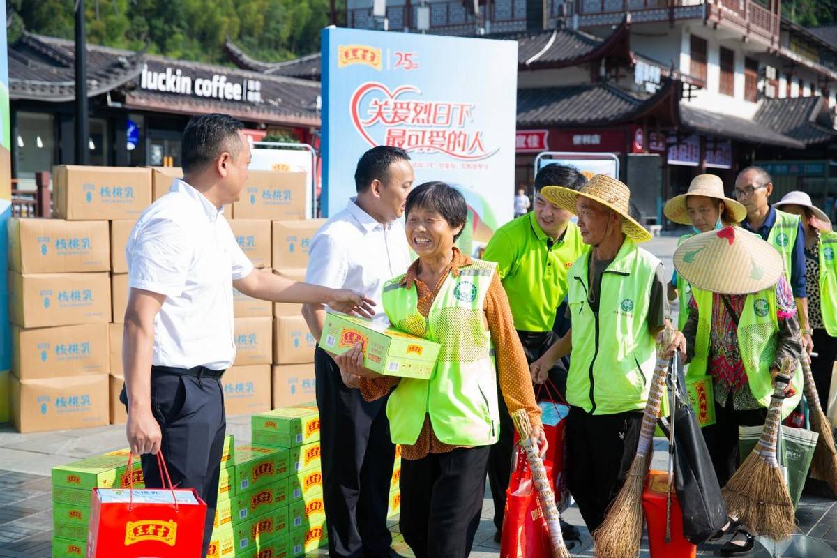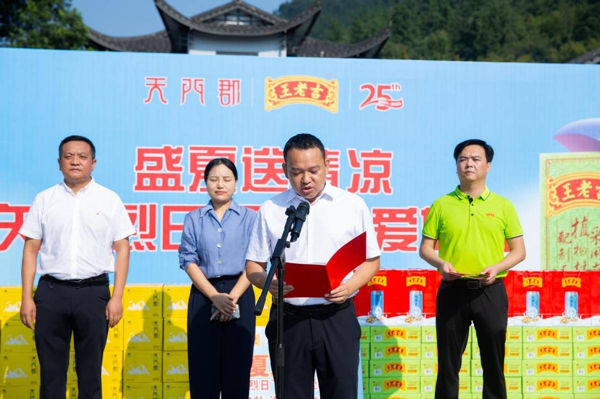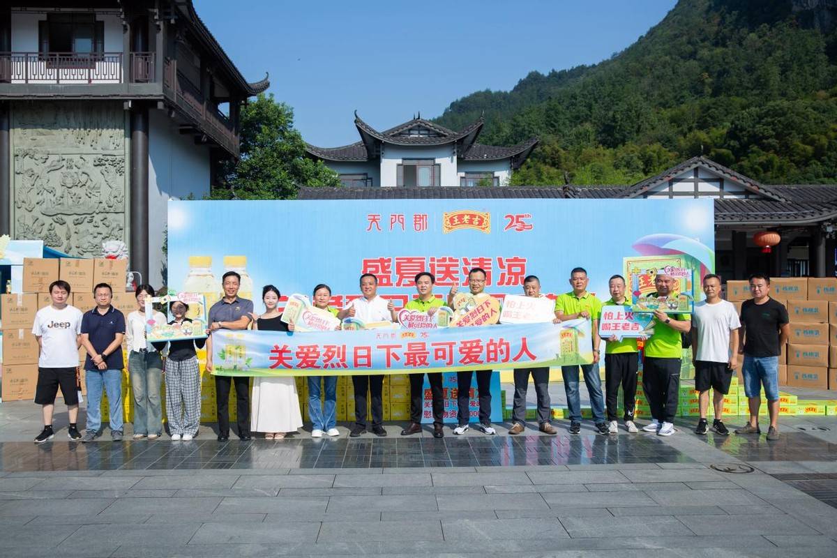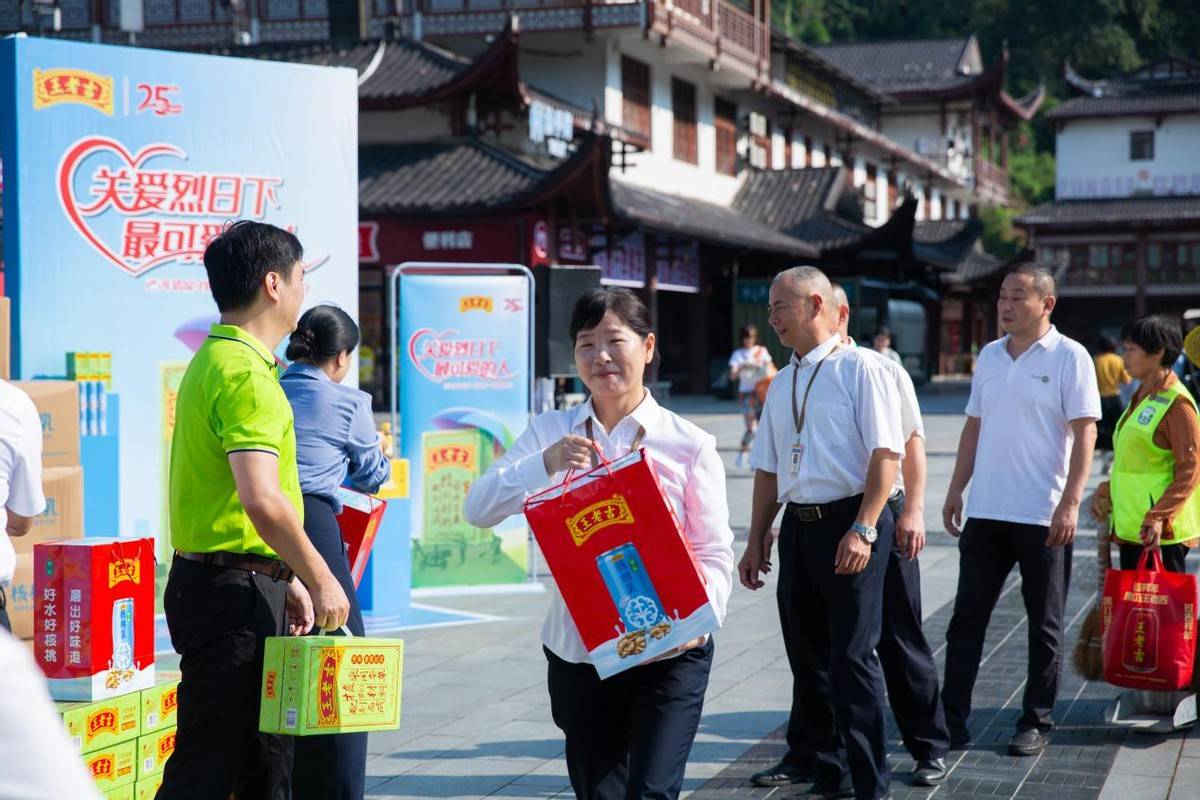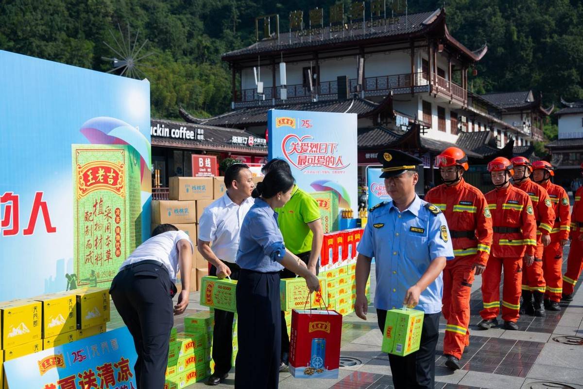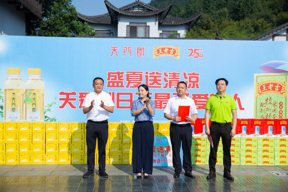 2025年8月29日上午,“盛夏送清凉,关爱烈日下最可爱的人”活动,在武陵源标志门举行。张家界武陵源风景名胜区和国家森林公园管理局党委委员、副局长向蔓、张家界武陵源风景名胜区和国家森林公园管理局党委委员、副局长毛尖尖、湖南天门郡控股集团股份有限公司董事长刘超、广州王老吉药业股份有限公司食品事业部负责人刘武等领导出席活动, 为这群烈日下最可爱的人送上一份清凉与关怀。