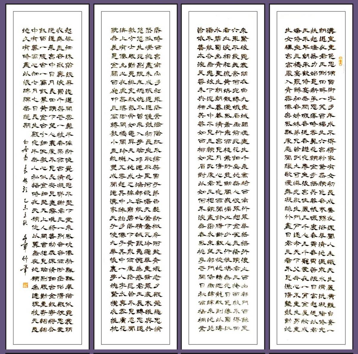 翟文章竹笔隶书四条屏《长恨歌》