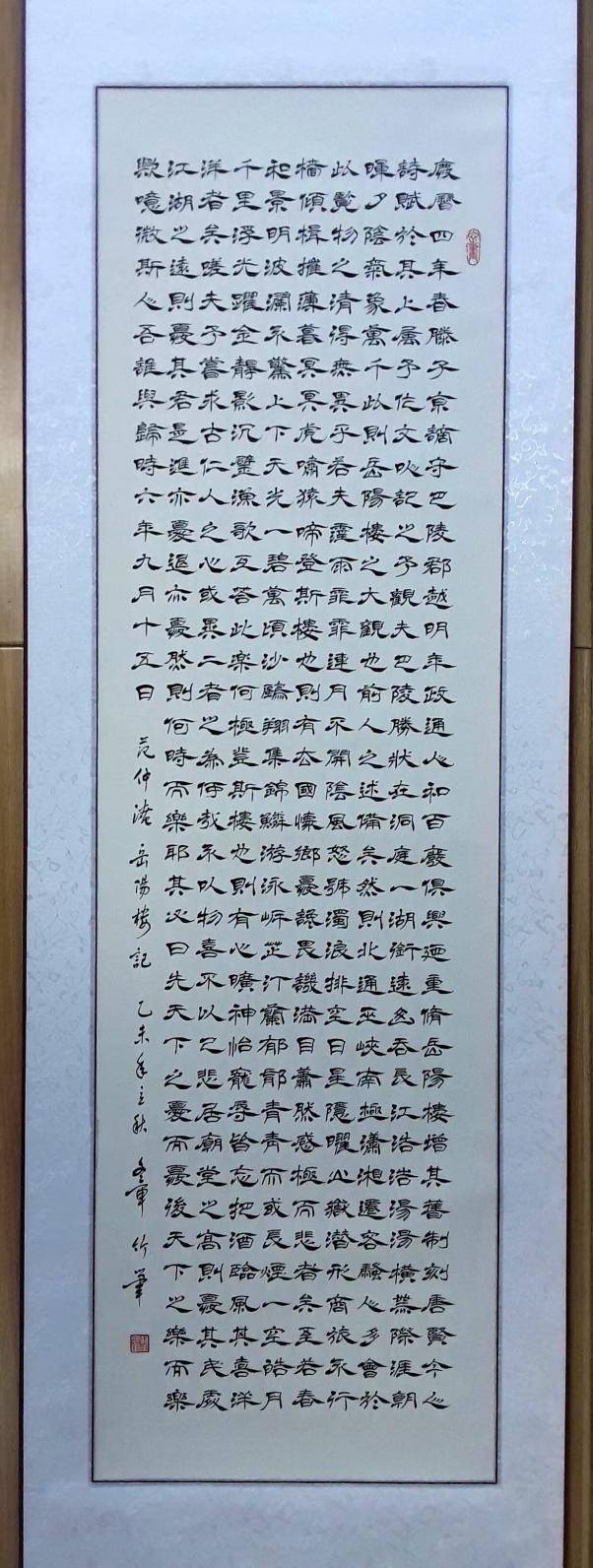 2013年“笔墨东方”国际书法大展408件作品中唯一竹笔书法作品,翟文章竹笔隶书《岳阳楼记》,并被中华国书法博物馆收藏。