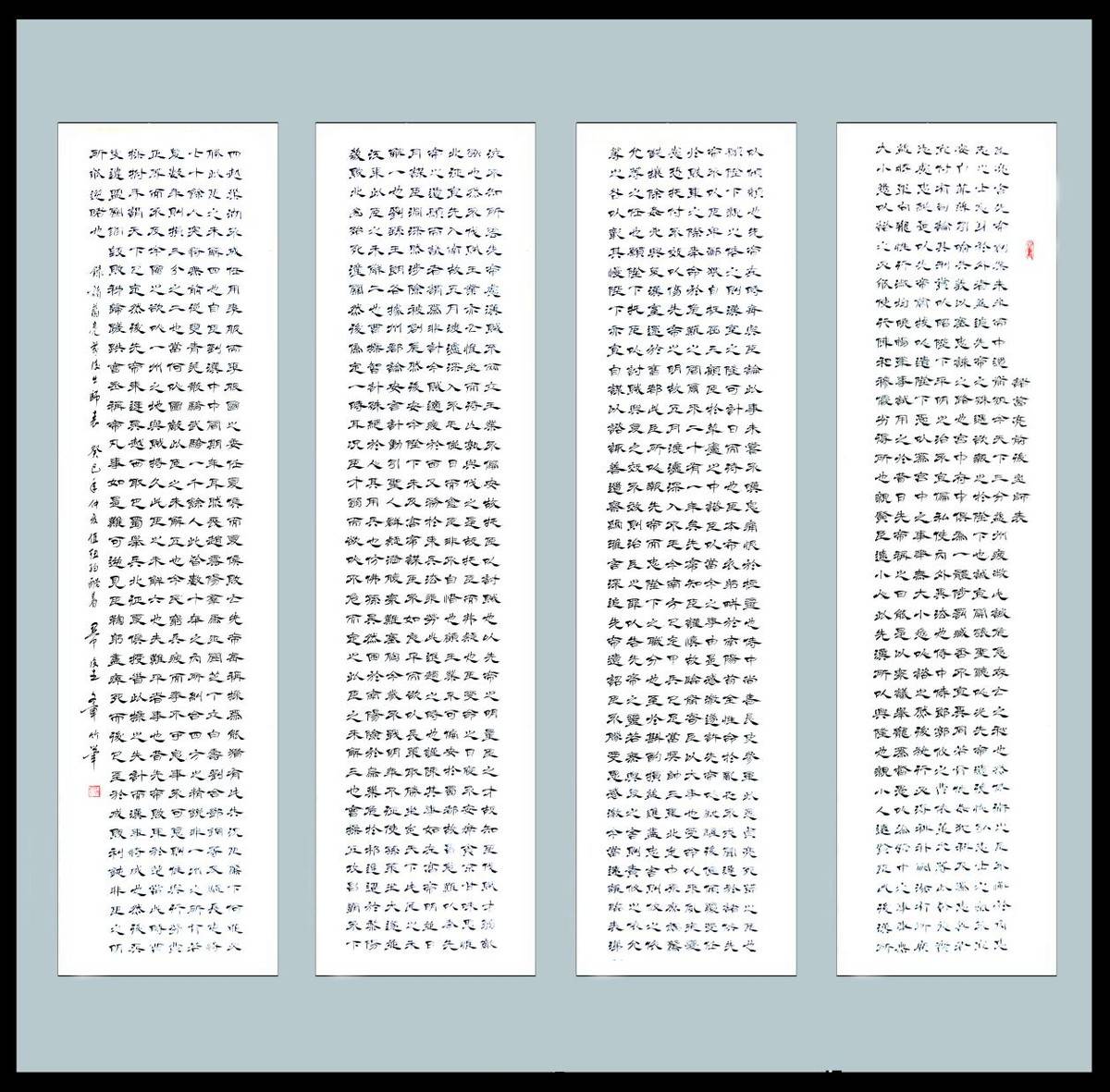 翟文章竹笔隶书《出师表》四条屏