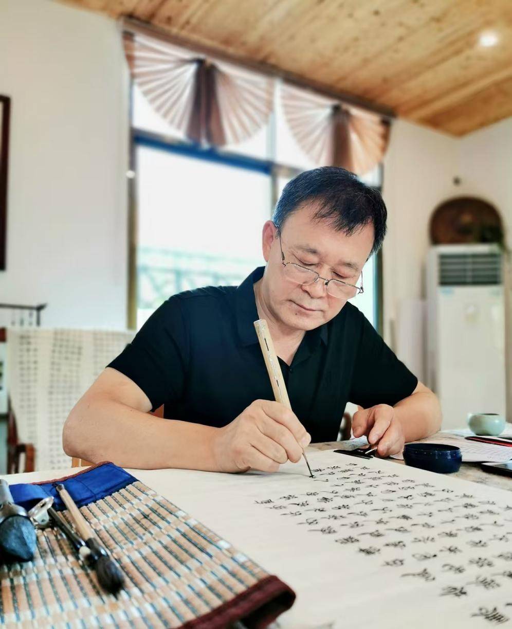 九二年定居美国,从亊纺织品美术设计与绘制,数以千计设计及绘制稿被美国各纺织品公司购买使用。2006年组织成立北美书法家协会并策办07年“纽约首届中国书法邀请展”,“北美书法家协会耶鲁大学书法精品展”。参加“2013年中国“笔墨东方”大型书法国际展、14年法国巴黎卢浮宫中法建交50周年国际书画艺术特展、14年组织策办纽约国际书法大展,参加16年日本东京全日书法展、韩国光州国际书法展、厦门国际书法邀请展;17年香港回归二十周年天津国际书法邀请展、海外书法家协会印尼一带一路国际书法邀请展、济南纪念孔子诞辰国际书法邀请展、海外书法家协会第二届新加坡国际书法大展、台湾全球正体汉字书法大奖赛优选奖;2019年迪拜千年之约海外书法家协会第三届国际书法大展;2023年台湾女书法家书法作品展特邀佳宾作品、印度尼西亚海外书法家协会第四届国际书法大展、第十届韩国釜山书法双年展、两岸当代百碑及书画联展;2024年汶莱海外书法家协会第五届国际书法大展、山东临沂龙园“龙”文化书法国际展、山东莱芜“善”文化国际书展、第28届世界文化艺术大展韩国交流展、 首届华侨华人国际书画荷兰区域大展、第五届北京国际书法双年展;2025年香港澳门于右任流派国际书法大展、海南省自贸港封关海外华人书法邀请大展、内蒙古乌兰察布第八届国际榜书交流展、2025首届港澳军旅国际书画邀请展。近年以来广泛参与国际及中国书法活动。作品为中国驻联合国军事代表团,《世界日报》,《人民日报》海外版,《光明日报》,中国书法博物馆,海外驻华大使,尼泊尔汉学家及国内外公司个人等收藏;并刻石制匾於北京南海子公园书法长廊、山东临沂书法碑林、烟台梅园书法碑林,陕西淳化书法碑林,陕西葭县书法碑林,台湾当代名家书法百碑,山东莱芜“迎善桥”书法长廊,福建龙岩冠豸山风景区牌楼及西安等城市公司及机构。