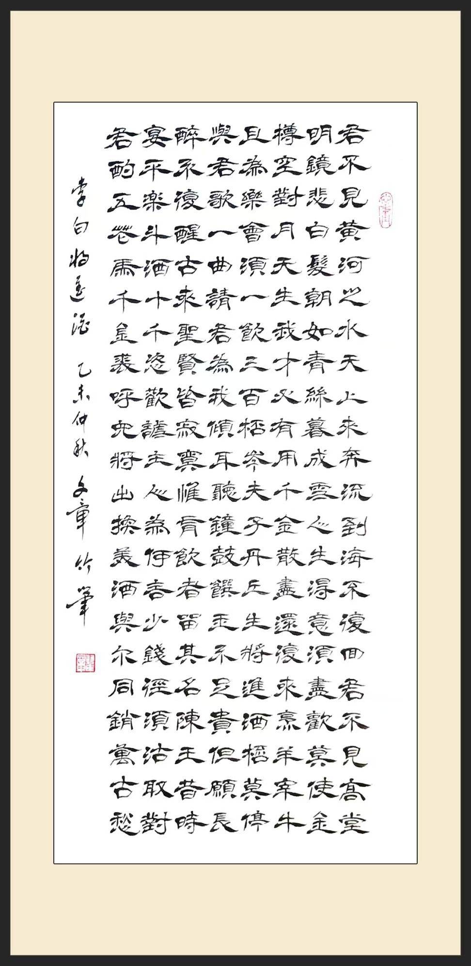 翟文章竹笔隶书李白诗《将进酒》