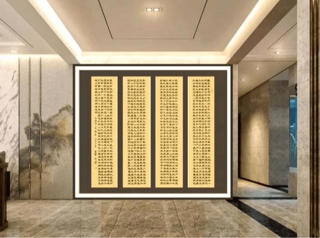 翟文章运用竹笔书法诠释着这一古老艺术的独特魅力。他创作了大量竹笔书法作品,这些作品题材广泛,形式多样。可以书写较长内容,如十条屏《金刚般若波罗蜜经》、四条屏《长恨歌》、《三字经》、《千字文》、《弟子规》;条屏《般若波罗蜜多心经》、《岳阳楼记》、《木兰辞》等等。这些作品以其深厚的艺术造诣和创新精神广受赞誉。这些作品不仅“新”在源于传统而不落俗套;“精”在用笔精细、结构端庄;“特”在深厚的传统功力和鲜明的个性;“美”在温润平和,高贵典雅。就目前所知,翟文章的竹笔书法,在海内外为仅见。