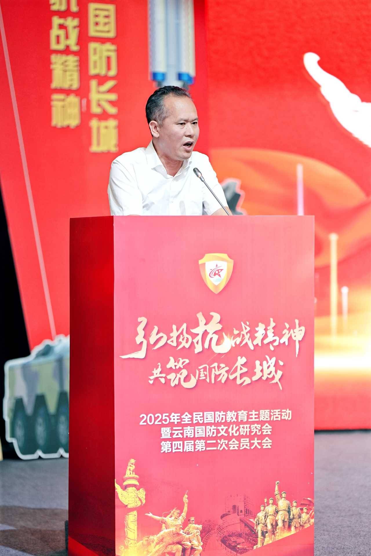 9月20日,云南国防文化研究会在昆明云安会堂报告厅隆重举办“弘扬抗战精神 共筑国防长城”主题教育活动暨第四届理事会第二次会员大会。大会旨在引导广大会员企业及社会各界群众,进一步增强国防意识,更加坚定地关心国防、热爱国防、建设国防、保卫国防,为全面推进强国强军事业汇聚强大正能量。