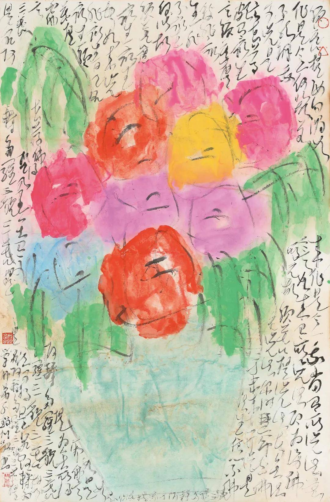 每一个用笔的起行收、每一个画面上的位置经营,线条、色彩都在 慢慢聚向精神的深处,这种气息不是可以追求的,而是在书写的过程中 笔笔生发而来的。