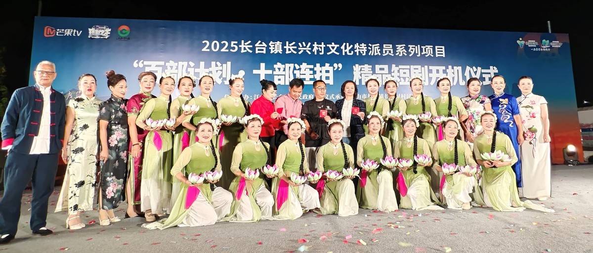 开机仪式结束后,江山市本地文艺演员轮番登场,表演了舞蹈《凤鸣悦舞》、歌曲《踏浪》、太极扇《中国功夫》、舞蹈《人间烟火》、女声小组唱《相遇》、歌伴舞《长兴村长兴》等精彩节目,为短剧的开机拍摄助兴,也将现场气氛推向了高潮。