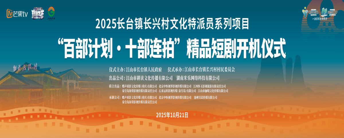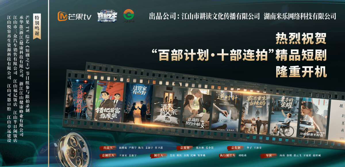 本次开机的系列短剧,由芒果TV综艺《短剧之王》、米乐短剧,江山市耕读文化传播中心联合出品。同时汇聚了蝶声重影文化传媒(重庆)有限公司、江山市好日子文化发展有限公司、北京中恒视界影视传媒有限公司、江西怀玉影视旅游有限责任公司、秦皇岛海葵影视传媒有限责任公司、石来运转影视传媒(秦皇岛)有限公司,池州昊晨传媒有限公司 、等多家业内优秀公司联合出品与承制。