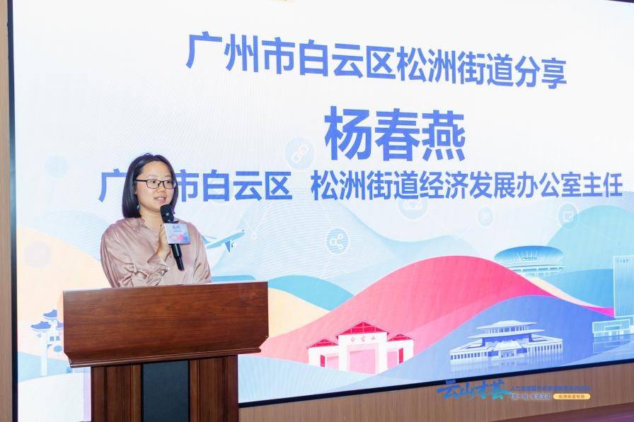 广州市白云区松洲街道经济发展办公室负责人杨春燕详细介绍了松洲街道产业布局、资源优势及人才政策,突出展示了从摩配产业升级到数字科创、食品商贸“双集群”的发展路径。
