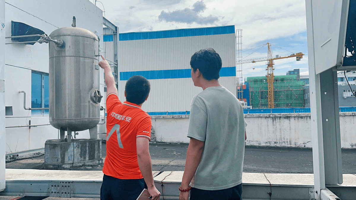 (图为 平安产险厦门分公司开展汛期专项排查,并为企业提供防灾防损整改建议)