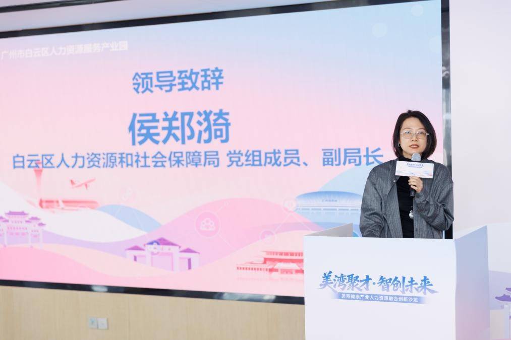 随后,沙龙正式拉开帷幕。广州市白云区人力资源和社会保障局党组成员 副局长侯郑漪上台致辞,既肯定了“白云美湾”美丽健康产业的坚实发展基础,也强调了人才对于产业升级的核心意义,同时对本次沙龙的供需对接与协同创新寄予殷切期望,为活动开篇领航。