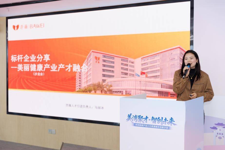 核心分享环节,行业标杆企业资深专家带来了针对性实践经验分享。广东芭薇生物科技股份有限公司马丽冰围绕《标杆企业分享——美丽健康产业产才融合》主题,从研发人才培养到产业创新实践,分享了企业在人才梯队建设中的宝贵经验,明确了产业核心岗位的人才需求方向。