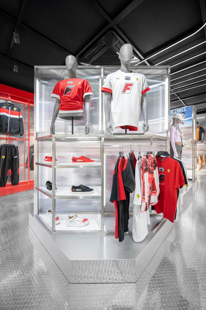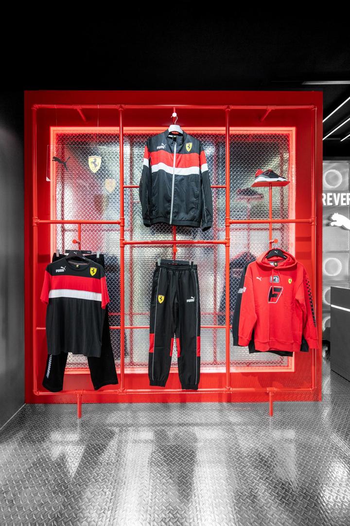 PUMA多元化的赛车系列产品在店内集中呈现,包括延续纯正街头文化精神的Motorsports艺术家合作灵感系列,以及特别展示的Ferrari合作系列。PUMA通过不断汲取赛车的激情与潮流的率性,并不拘一格地融入了创新设计,塑造出全新运动潮流的个性表达。